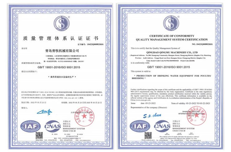 青島青牧機械有限公司成立于2013年,是一家集研發(fā)、生產(chǎn)、銷售、服務(wù)于一體的綜合性企業(yè)。公司專注于家禽飲水設(shè)備的研發(fā)和生產(chǎn),擁有專業(yè)的研發(fā)團(tuán)隊、先進(jìn)的加工設(shè)備以及自動化組裝線,力求打造“簡單、高效、環(huán)保”的高端禽用飲水系統(tǒng)。